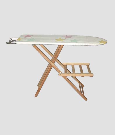 Totalmente In Legno Massiccio Con Piano Dotato Di Fessure Per Stiro A Vapore – Appoggiaferro In Filo D’acciaio Nichelato – Altezza Regolabile In 2 Posizioni – Piano Di Lavoro Cm.120×35 – Pianetto Portabiancheria