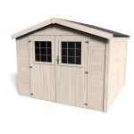 Casetta FLODAVIL 3,24×2,68 m in legno Abete del Nord Sistema Block House senza Pavimento Struttura in legno massiccio con doppio intaglio Spessore 28 mm Porta doppia fissata da cardini al telaio con vetro sintetico Tetto in truciolare Finitura bituminosa nera da 1,5 mm Pendenza 18 gradi Peso 457 kg