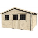 Casetta FLODEAL 4,12×3,13 m in legno Abete del Nord Sistema Block House senza Pavimento Struttura in legno massiccio con doppio intaglio Spessore 28 mm Porta doppia fissata da cardini al telaio con vetro sintetico Tetto in truciolare Finitura bituminosa nera da 1,5 mm Pendenza 18 gradi Peso 572 kg
