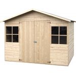 Casetta LOGUEC 2,62×2,02 m in legno Abete del Nord con Pavimento in truciolare Struttura a pannelli pre assemblati Spessore 12 mm Porta doppia su cardini Tetto in truciolare con finitura bituminosa Pendenza 15 gradi Peso 224 kg