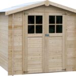 Casetta LOPUN 2,89×2,02 m in legno Abete del Nord con Pavimento in truciolare Struttura a pannelli in legno massiccio Spessore 12 mm Porta doppia su cardini Tetto in truciolare con Finitura bituminosa da 1,5 mm Pendenza 18 gradi Peso 241 kg