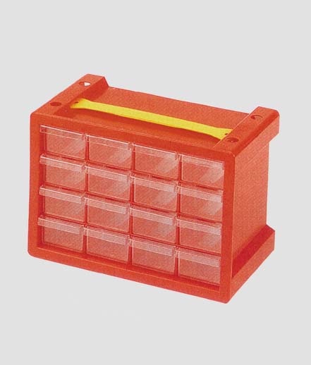 Cassettiera Sovrapponibile Ad Incastro, Trasportabile, Dotata Di 16 Cassetti – Completa Di 10 Divisori Mobili P1 – Max 48 Scomparti Con Divisori Optionals – Colore Rosso