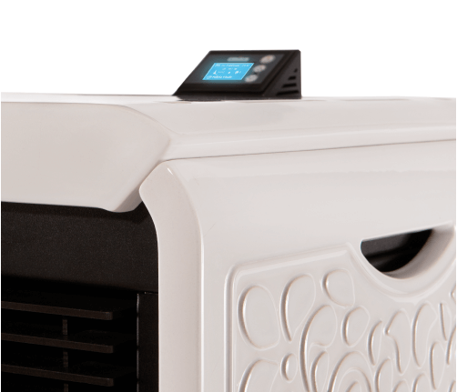 | – Sistema RDS di serie – Finitura acciaio verniciato color antracite – Rivestimento in maiolica – Camera di combustione in FIREX 600 – Braciere in ghisa – Porta con vetro ceramico serigrafato resistente a 750°C – Controllo delle funzioni con display grafico e telecomando in dotazione – Riscaldamento con ventola centrifuga – Sistema di pulizia vetro – Cronotermostato di serie |