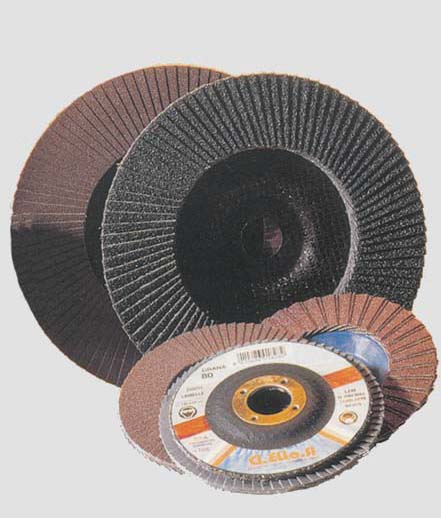 Disco Abrasivo Lamellare Con Tela Doppia Resina Al Corindone (ossido D’alluminio) Profilo Conico – Supporto In Fibra Oppure In Nylon – Alta Capacità Di Asportazione E Finitura Accurata – Foro Cm.22 – Max R.p.m. 13300