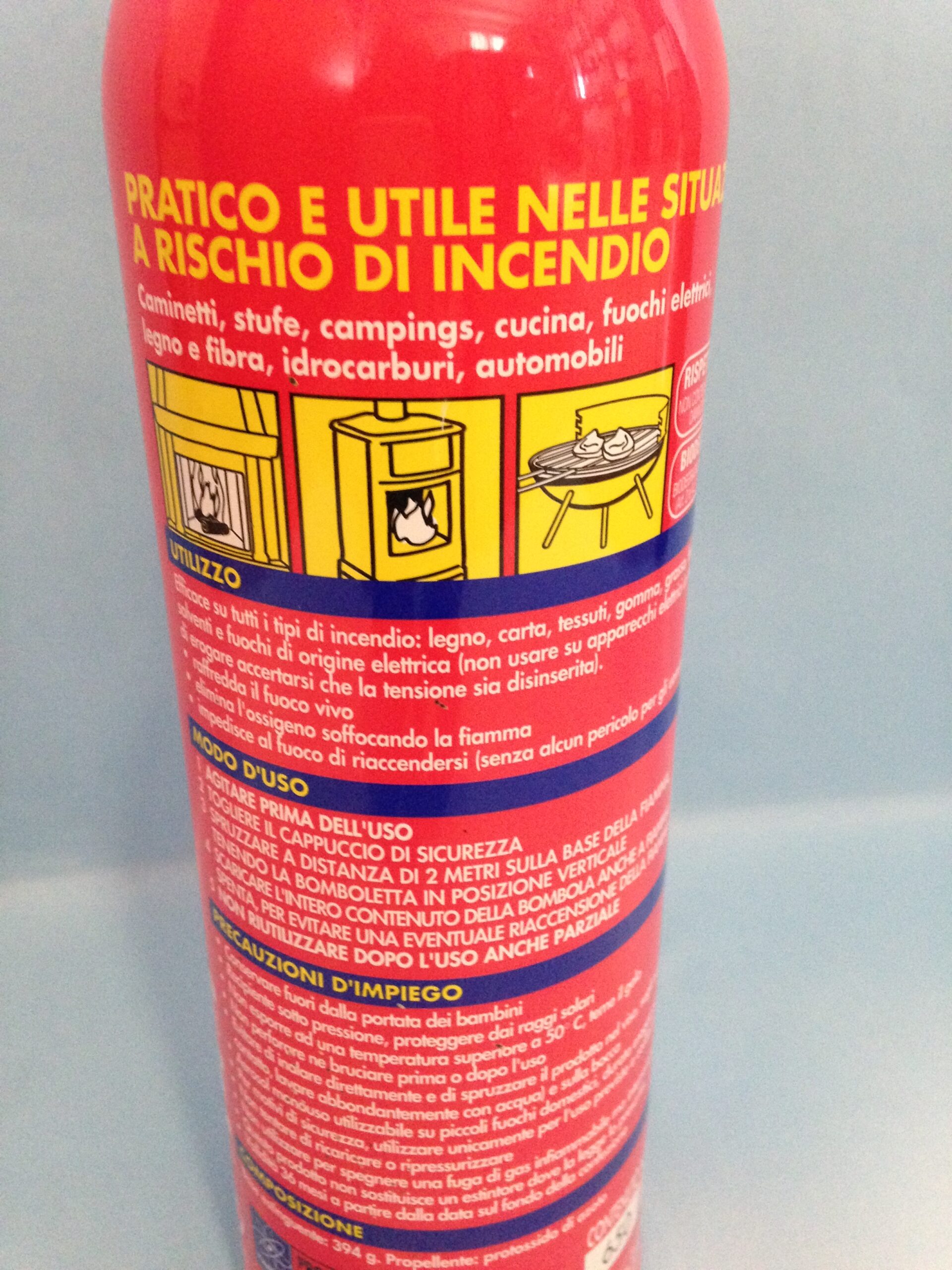 - AEROSOL MONOUSO UTILIZZABILE SU PICCOLI FUOCHI DOMESTICI, DURATA EROGAZIONE 14/16 SECONDI.