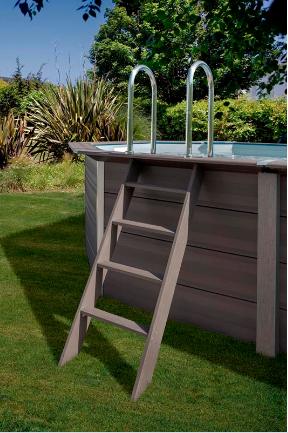 La gamma di piscine in composito della GRE hanno un aspetto innovativo, non solo per la sua disponibilità in differenti forme, ma anche per la composizione del suo materiale: una combinazione di legno e di P.V.C.