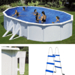 GRE – Piscina Fuori Terra Ovale Santorini 610x375x132 cm con decorazione pietra e sistema Omega.