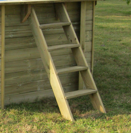 - Scala esterna in legno e scala interna in acciaio inox