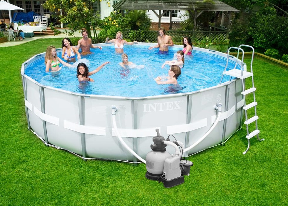 Intex da sempre coccola i propri clienti. La piscina fuori terra Ultra Frame è dotata di pompa a sabbia,