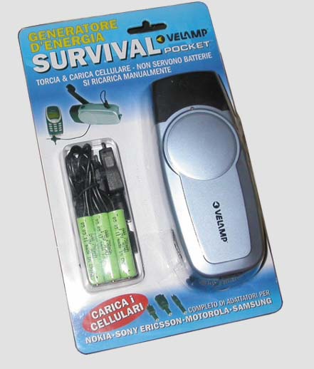 Torcia 3 Led & Carica Cellulare, Pda (palmari) E Cd Player – Ricaricabile Manualmente Con Manovella (1 Minuto Di Rotazione = 30 Minuti Di Utilizzo – Completo Di Adattatori Per : Nokia – Sony Ericsson – Motorola – S