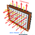 Il calore viene trasmesso sia per irraggiamento che in forma convettiva e quindi naturale: dallo spazio sottostante la cornice, passa l’aria fredda che viene immessa verso l’alto, già riscaldata.