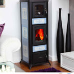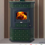 Lincar – Stufa a legna Alice 480LZ a fiamma visibile, in ceramica con decori, scarico fumi superiore 6 kw.