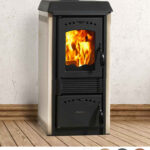 Lincar – Stufa a legna Alice 490LZ a fiamma visibile con forno, in ceramica, scarico fumi superiore 6 kw.