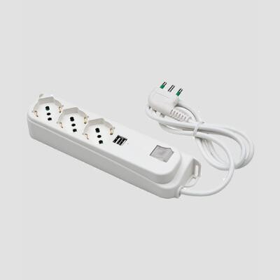 Art.40450fk – 3 Uscite – 2p+t 16a Bipasso/ Schuko – Cavo Da Mt. 1,5 3g1 H05vv-f – Spina 2p+t 16a – Interruttore Bipolare Luminoso – 2 Uscite Usb 1a Totali – Made In Italy – Marcatura Ce
