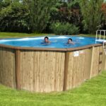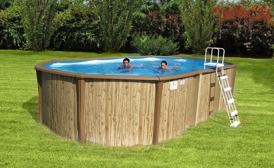 Piscina componibile in acciaio simil legno ondulato e preverniciato con uno speciale trattamento anticorrosivo.