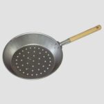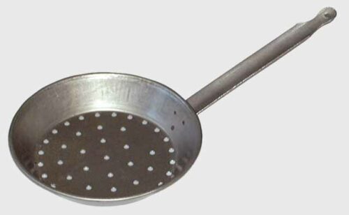 Padella Forata Acciaio Lucido Con Manico Per Castagne