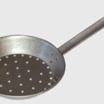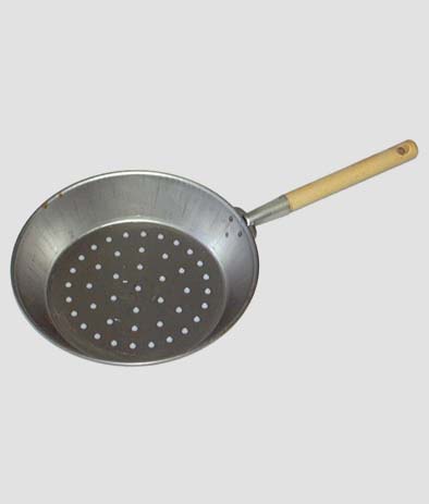Padella Forata Acciaio Lucido Manico Legno Per Castagne