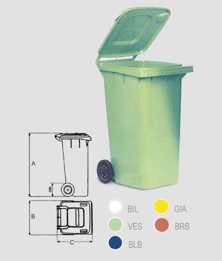 Art.1/120/5 – Capacità Lt.120 – Prodotto In Polietilene Pe-hd – Lavabile – Con Ruote Da Mm.200