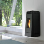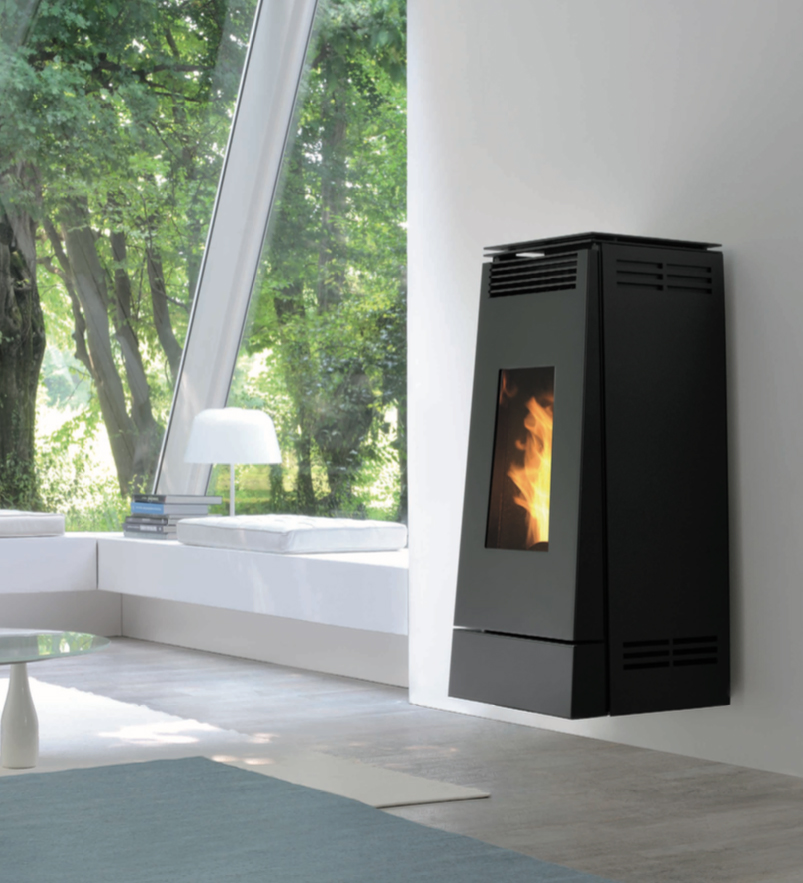 Stufa in stile metropolitano nel segno di un design contemporaneo, esaltato dalla forma a trapezio ripresa anche nella porta. Una sintesi perfetta tra stile ed efficienza. Rivestimento in lamiera d’acciaio verniciata. Struttura in acciaio verniciato nero.