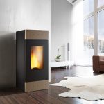 Stufa a pellet dallo stile semplice, pulito, lineare. Il frontale leggermente sagomato e l’ampio vetro ampio consentono una piacevole visione del fuoco. Il rivestimento è realizzato in lamiera d’acciaio verniciata. Struttura in acciaio verniciato nero.