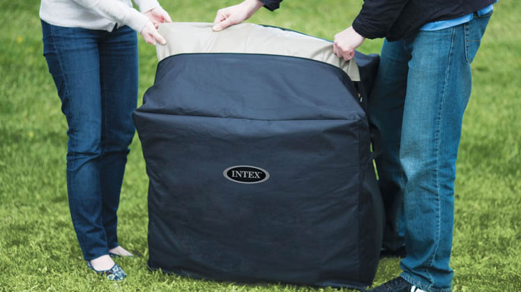 - Tasporto della vasca: Dotata di una borsa per il trasporto e un dispenser di cloro e strisce tester che assicurano acqua pulita e cristallina in ogni momento