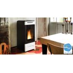 Telecomando con termostato incorporato per l’accensione, lo spegnimento e la regolazione della stufa anche a distanza e da ambienti diversi rispetto a quello dove si trova l’apparecchio.