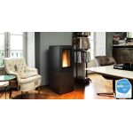 Telecomando con termostato incorporato per l’accensione, lo spegnimento e la regolazione della stufa anche a distanza e da ambienti diversi rispetto a quello dove si trova l’apparecchio.