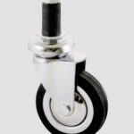Supporto In Acciaio Cromato Stampato Rotante Su Corona Di Sfere – Ruota In Gomma Nera Con Parafili E Flange In Acciaio Stampato, Rotante Su Cuscinetti A Sfera
