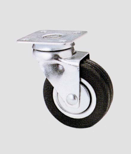 Supporto In Acciaio Zincocromato Stampato Su Doppia Corona Di Sfere – Ruota In Gomma Nera
