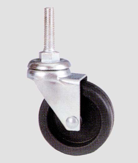 Supporto In Acciaio Zincocromato Stampato Su Doppia Corona Di Sfere – Ruota In Gomma Sintetica Nera Flangiata In Termoplastica