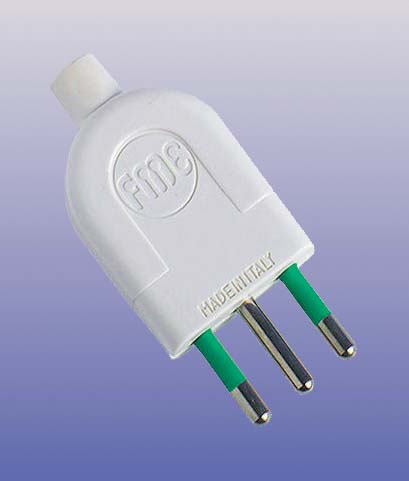 Corpo E Frutto In Policarbonato Ad Alta Resistenza Al Calore Ed Agli Urti – Spina In Materiale Autoestinguente Con Spinotti In Ottone Nichelato – Colore Bianco